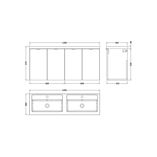 Hudson Reed Fusion 1200mm Wall Hung Vanity Unit & Twin Polymarble Basin