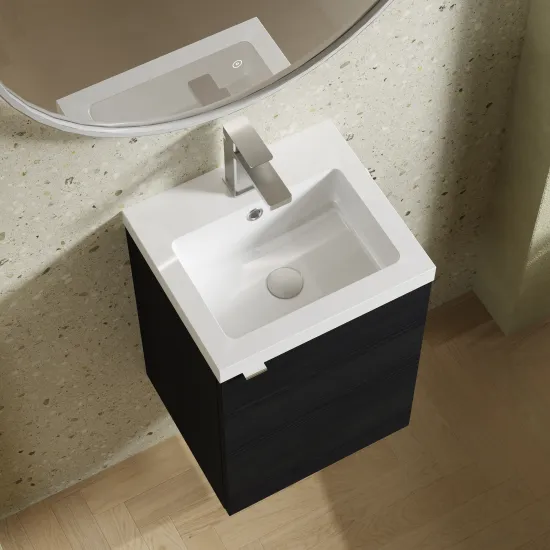 Hudson Reed Fusion Wall Hung 1 Door Vanity Unit & Polymarble Basin 400mm - Hacienda Black