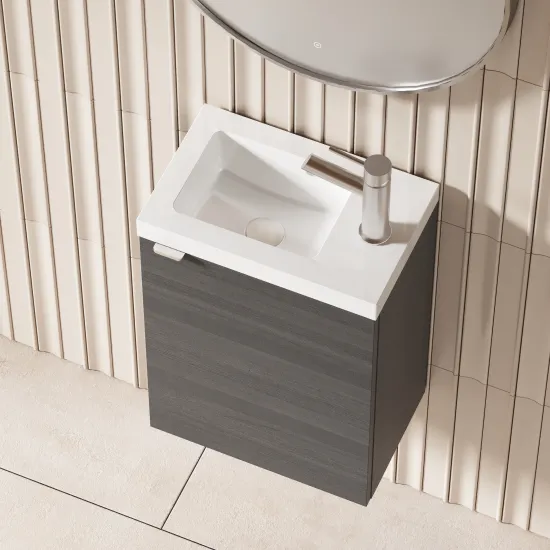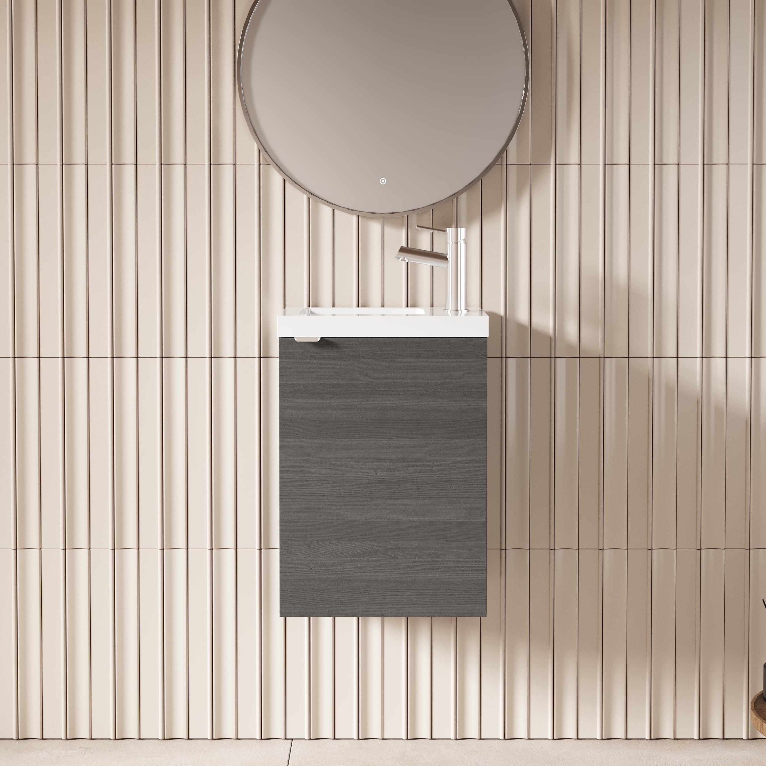 Hudson Reed Fusion Wall Hung 1 Door Vanity Unit & Polymarble Basin Compact 400mm - Anthracite Woodgrain