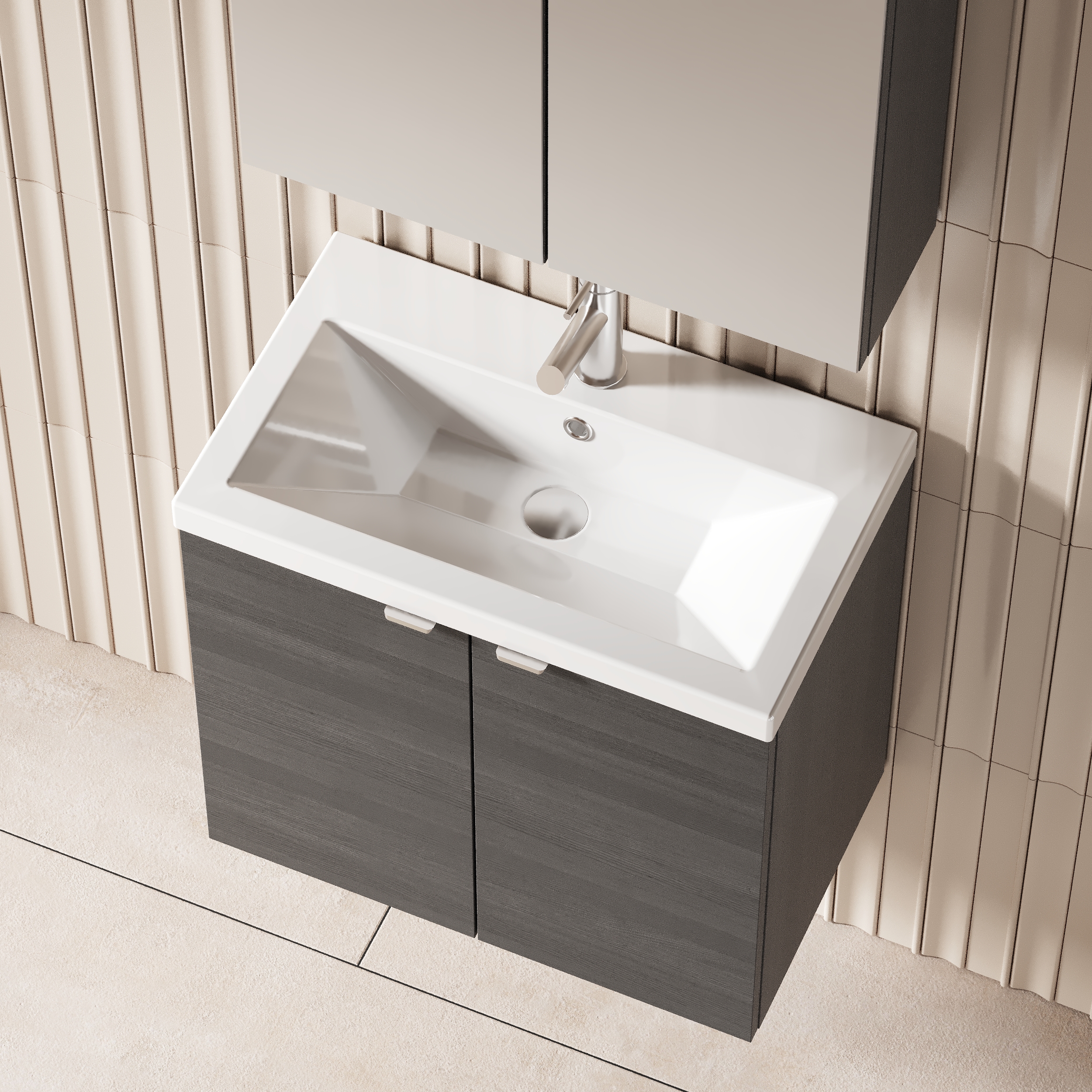 The cooling effect of this Anthracite Woodgrain unit creates seamless contrast with our range of ceramic basins.