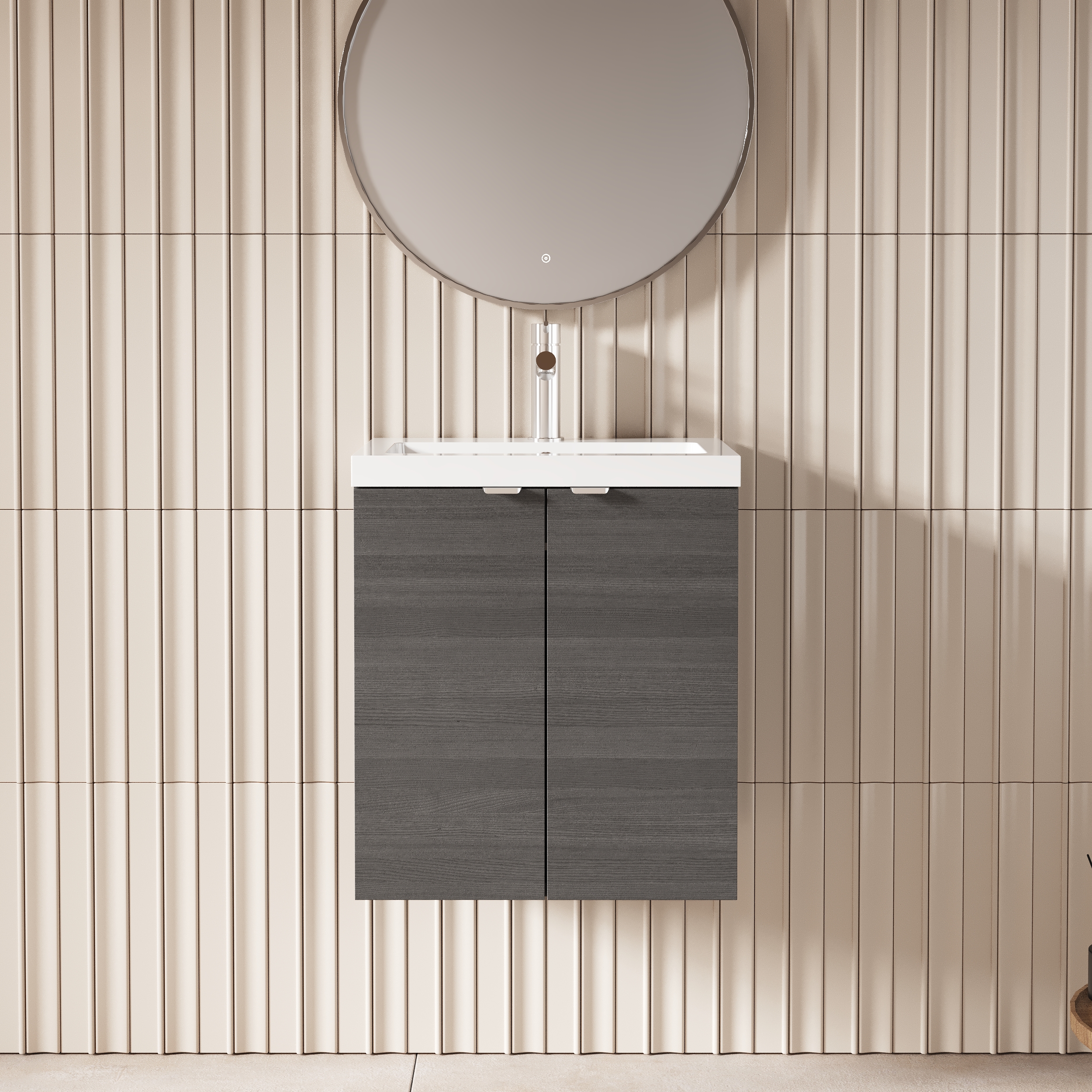 Hudson Reed Fusion Wall Hung 2 Door Vanity Unit & Polymarble Basin 500mm - Anthracite Woodgrain