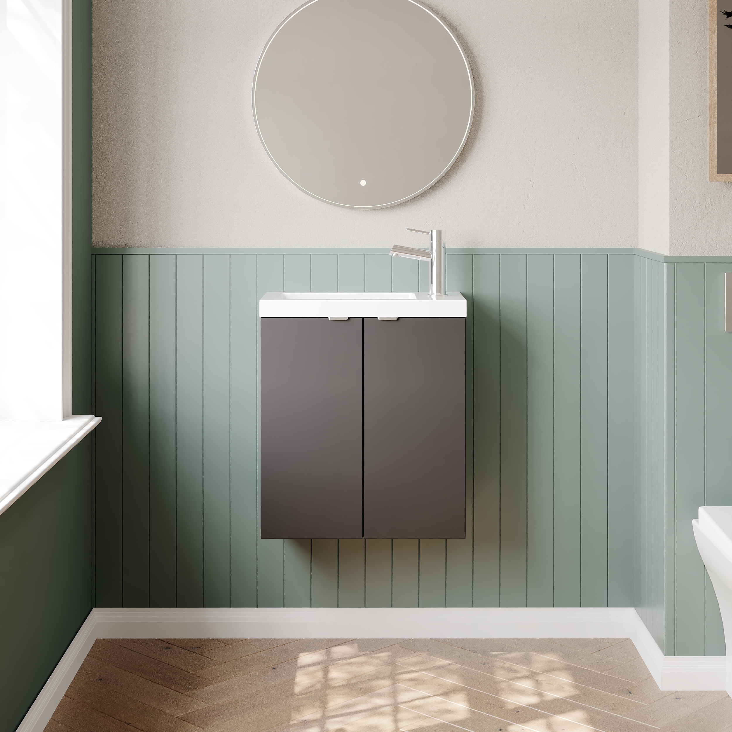 Hudson Reed Fusion Compact 500mm Anthracite Woodgrain Wall Hung 2 Door Vanity Unit & Polymarble Basin