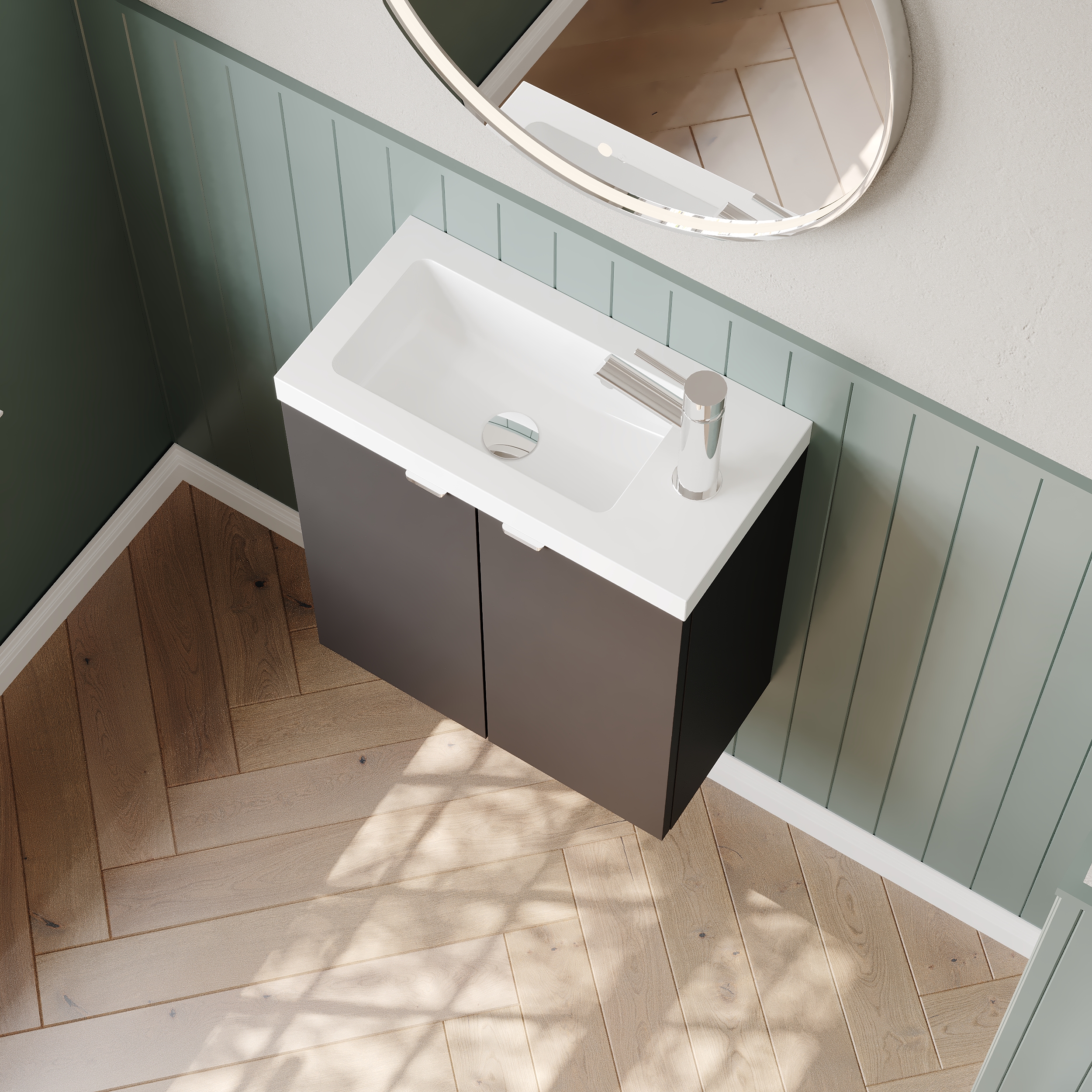 Hudson Reed Fusion 500mm Charcoal Black Wall Hung 2 Door Vanity Unit & Polymarble Basin