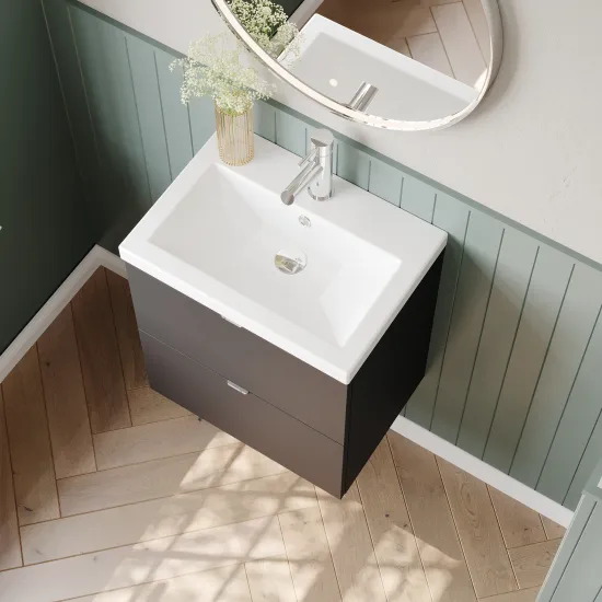 Hudson Reed Fusion 500mm Anthracite Woodgrain Wall Hung 2 Drawer Vanity Unit & Basin