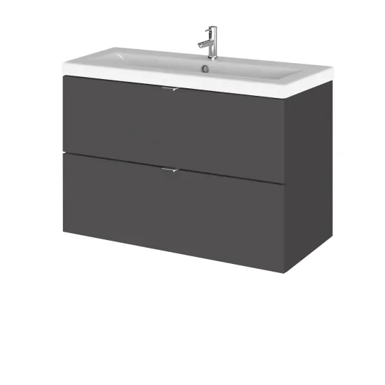 Hudson Reed Fusion Wall Hung 2 Drawer Vanity Unit & Ceramic Basin 800mm - Gloss Grey