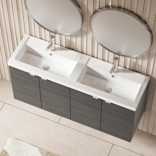 Hudson Reed Fusion Wall Hung 4 Door Vanity Unit & Twin Polymarble Basin 1200mm - Anthracite Woodgrain
