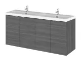 Hudson Reed Fusion 1200mm Anthracite Woodgrain Wall Hung Vanity Unit with Double Basin