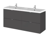 Hudson Reed Fusion 1200mm Gloss Grey Wall Hung 4 Drawer Vanity Unit with Double Polymarble Basin