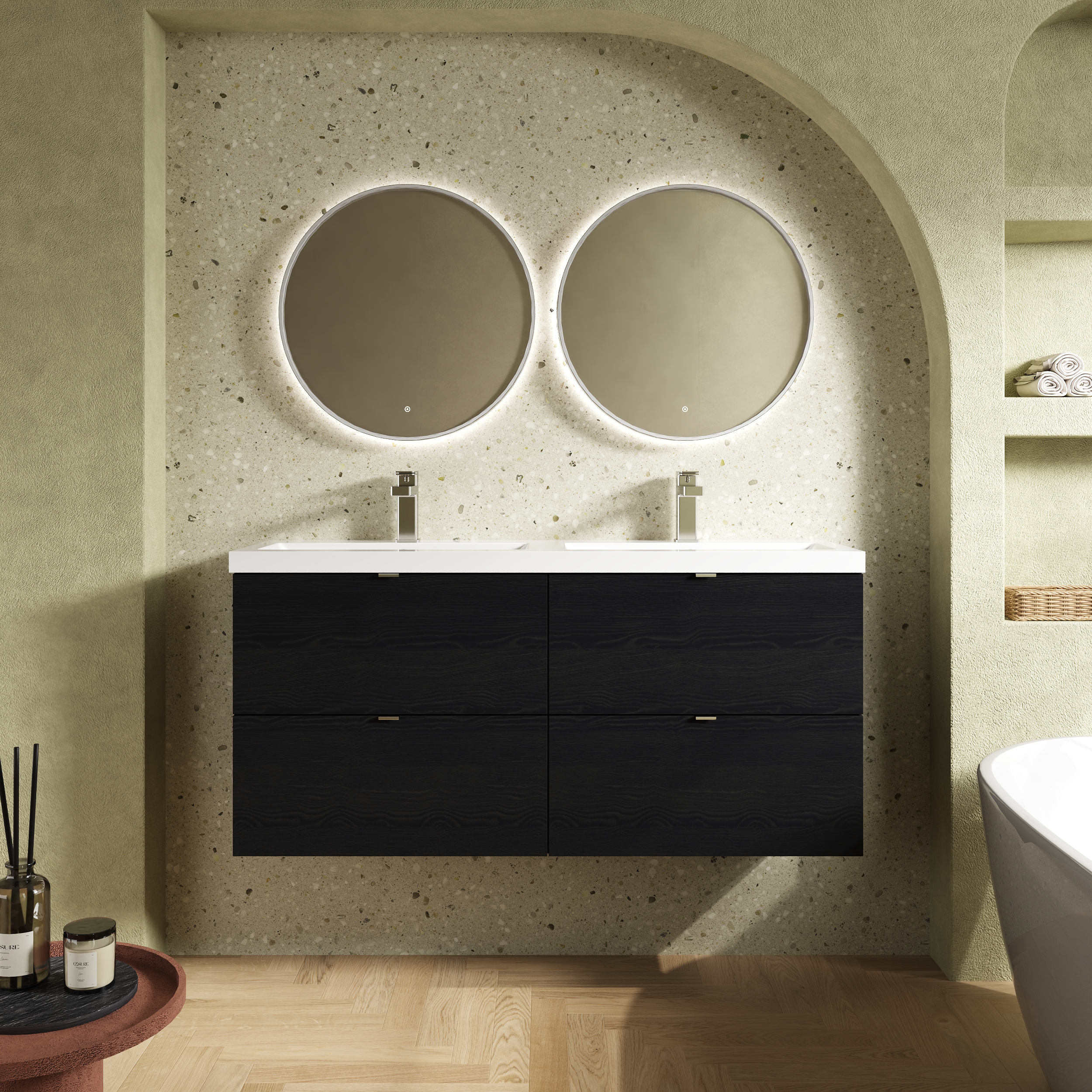 Hudson Reed Fusion Wall Hung 4 Drawer Vanity Unit & Twin Polymarble Basin 1200mm - Hacienda Black