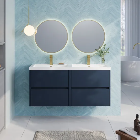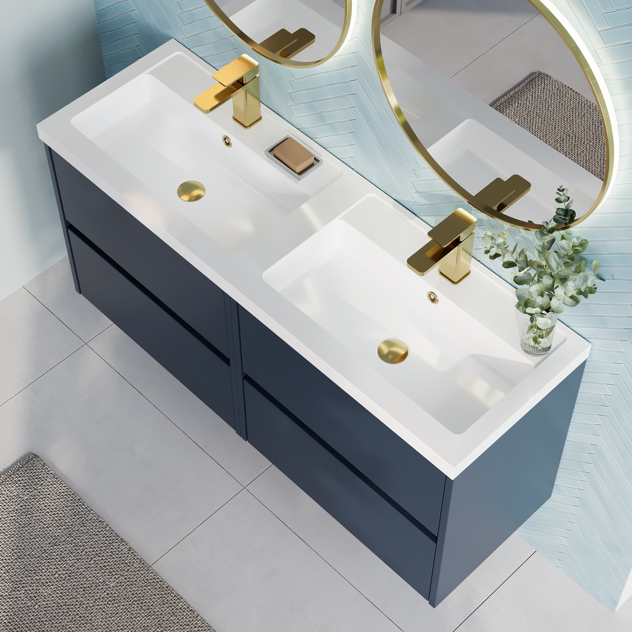 nuie Havana 1200mm Wall Hung 4-Drawer Unit & Double Basin - Midnight Blue