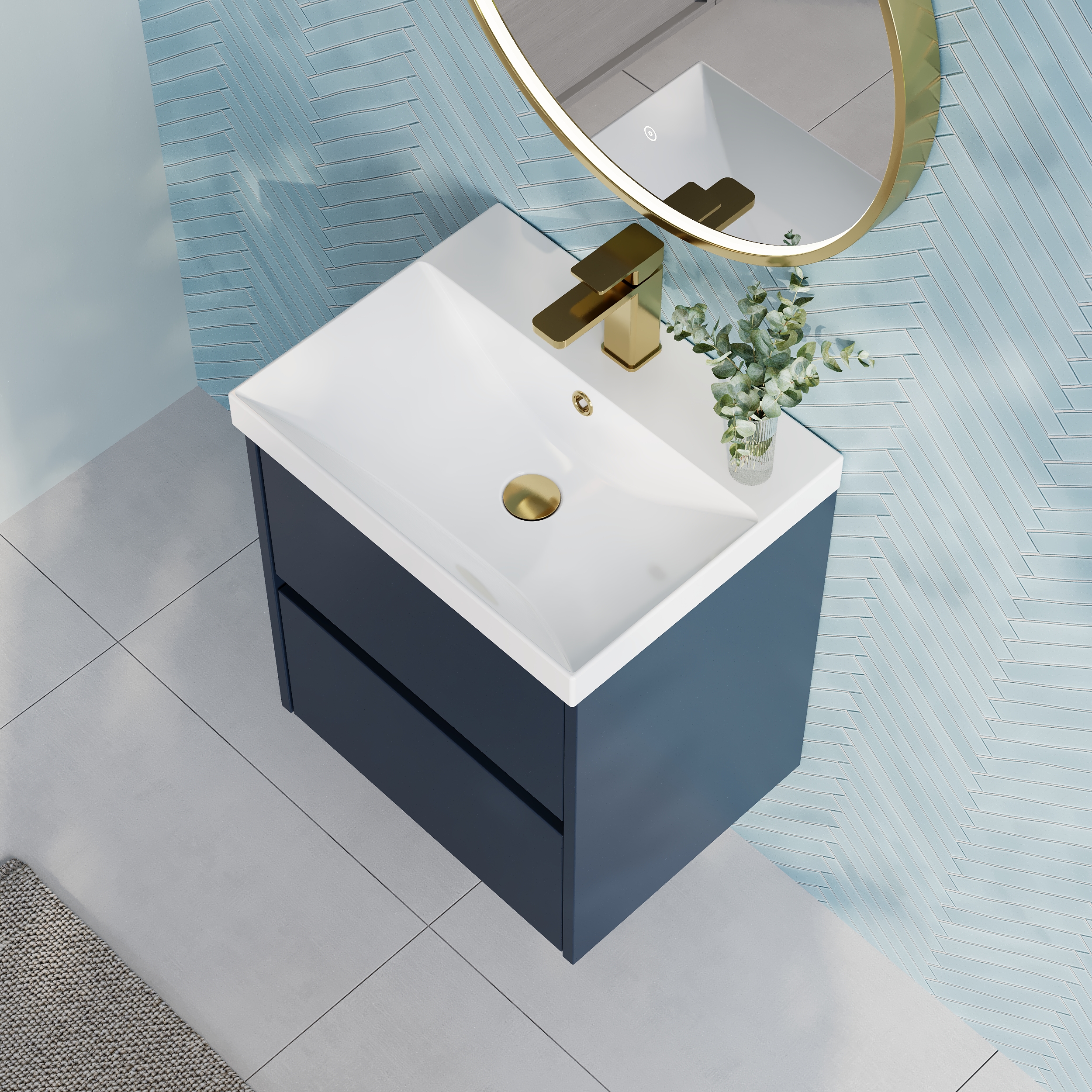 Nuie 500mm Midnight Blue Wall Hung 2-Drawer Unit & Basin