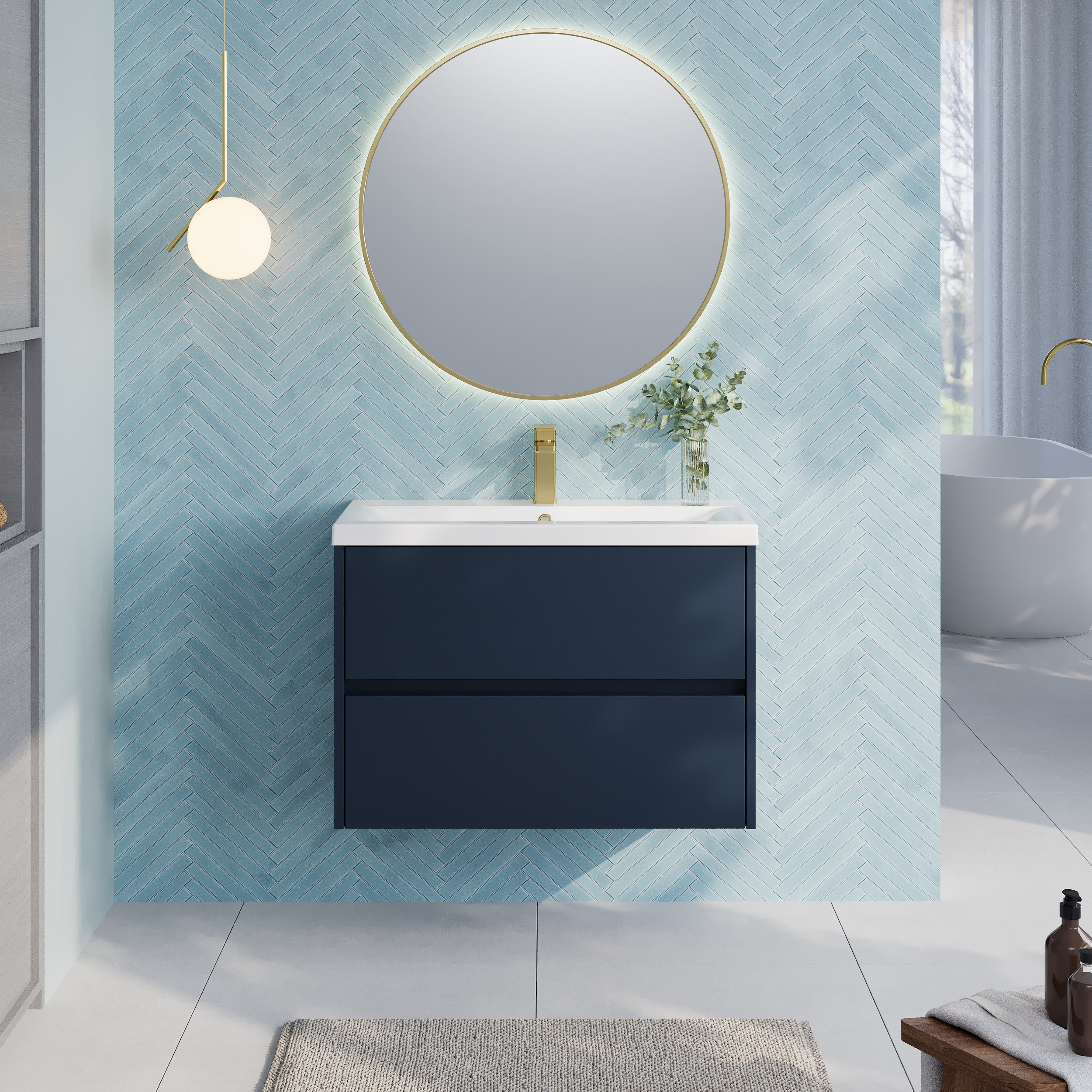 Nuie Havana 800mm Midnight Blue Wall Hung 2-Drawer Unit & Basin