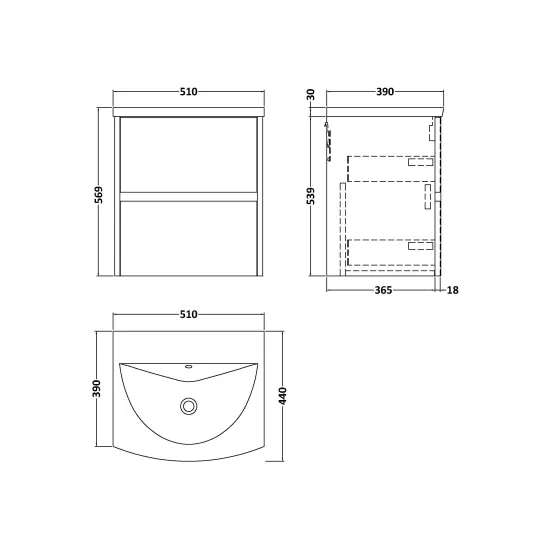 Nuie Havana 500mm Wall Hung 2 Drawer Vanity Unit With Ceramic Basin
