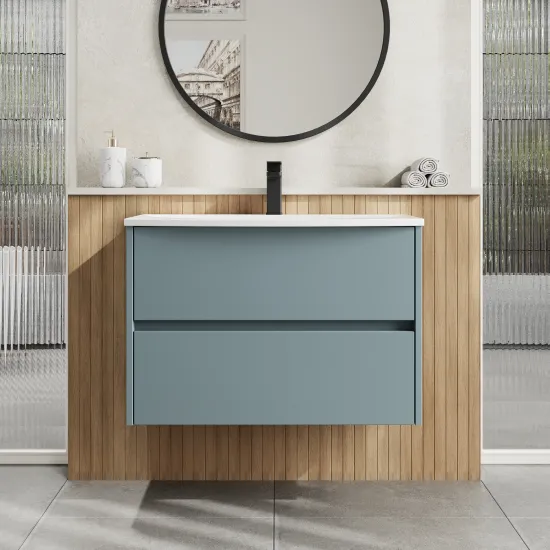 Nuie Havana 800mm Coastal Grey Wall Hung 2 Drawer Handleless Vanity Unit with Thin-Edge Ceramic Basin