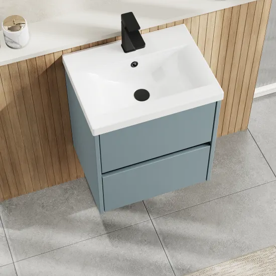 nuie Havana Wall Hung 2 Drawer Vanity Basin Unit & Mid-Edge Ceramic Basin, 500mm - Coastal Grey