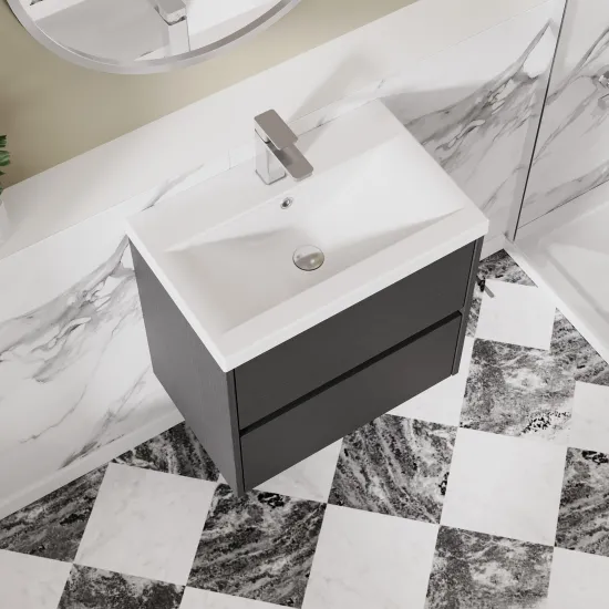 nuie Havana Wall Hung 2 Drawer Vanity Basin Unit & Mid-Edge Ceramic Basin, 600mm - Graphite Grey