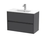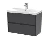 nuie Havana Wall Hung 2 Drawer Vanity Basin Unit & Mid-Edge Ceramic Basin, 800mm - Graphite Grey