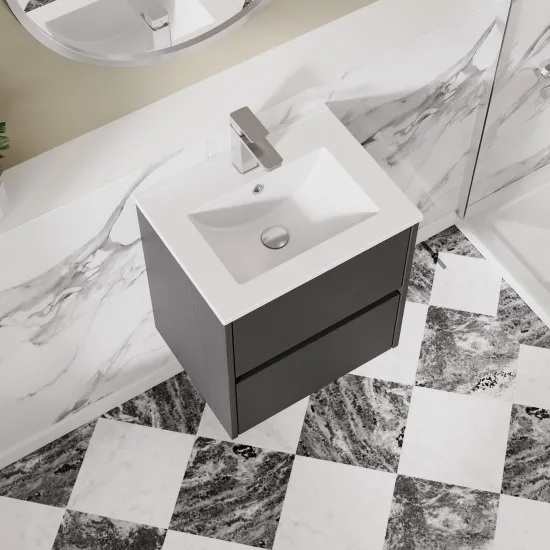 Nuie Havana 500mm Graphite Grey Woodgrain Wall Hung 2 Drawer Vanity Unit with Basin, Soft Close Drawers
