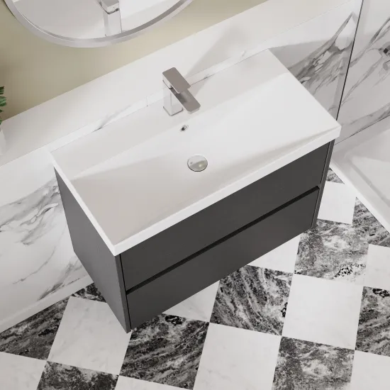 Nuie Havana 800mm Graphite Grey Woodgrain Wall Hung Vanity Unit with Thin-Edge Ceramic Basin