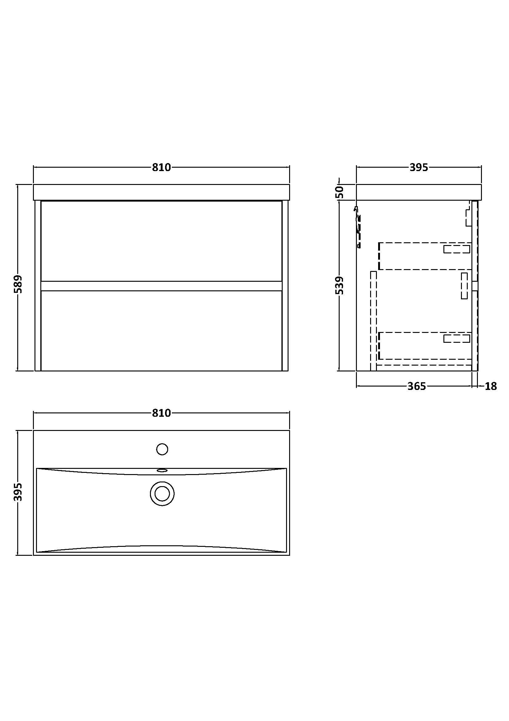 Nuie Havana 810mm Metallic Slate 2 Drawer Wall Hung Vanity Unit With Thin-Edge Ceramic Basin
