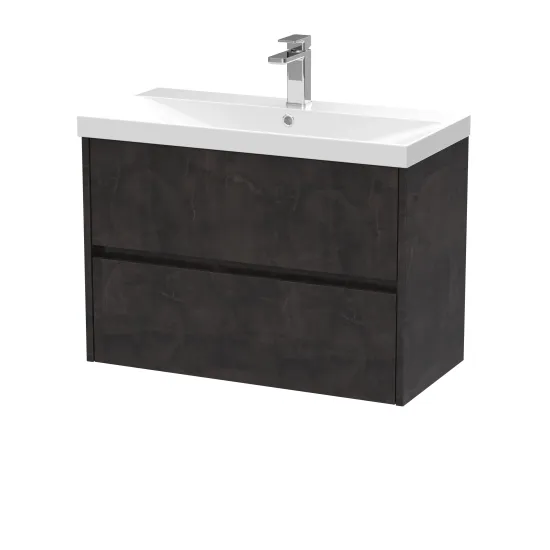 Nuie Havana 800mm Metallic Slate Wall Hung 2 Drawer Vanity Unit With Basin