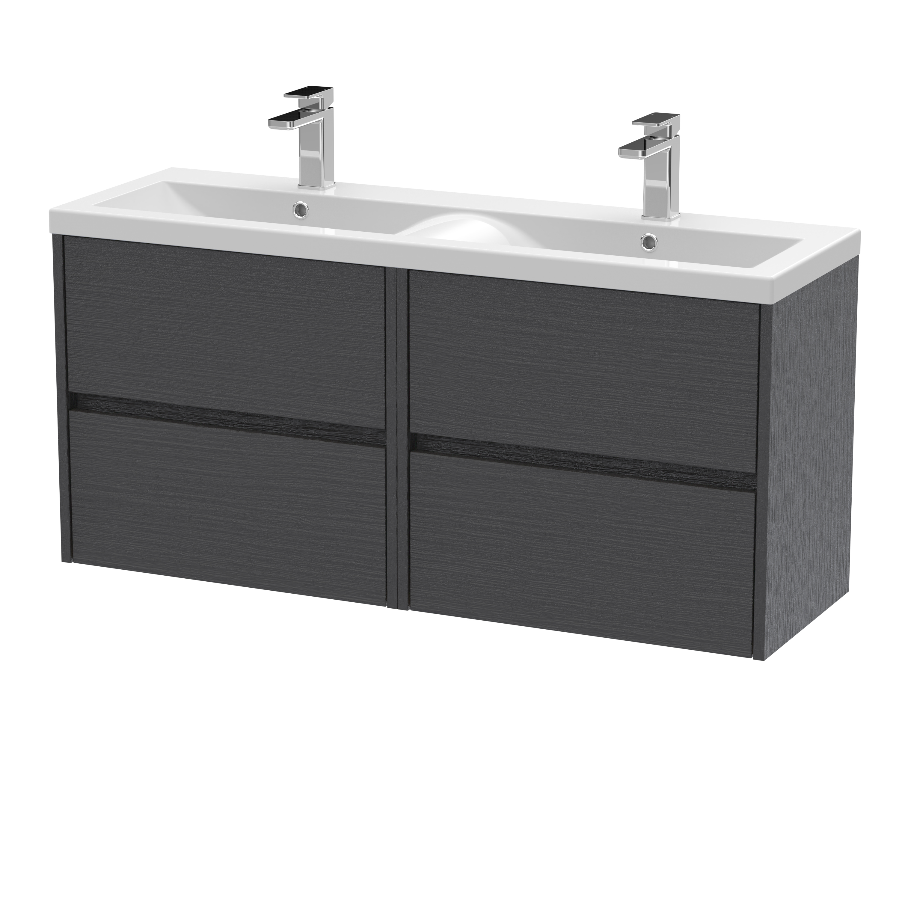 nuie Havana Wall Hung 4 Drawer Vanity Basin Unit & Double Ceramic Basin, 1200mm - Graphite Grey