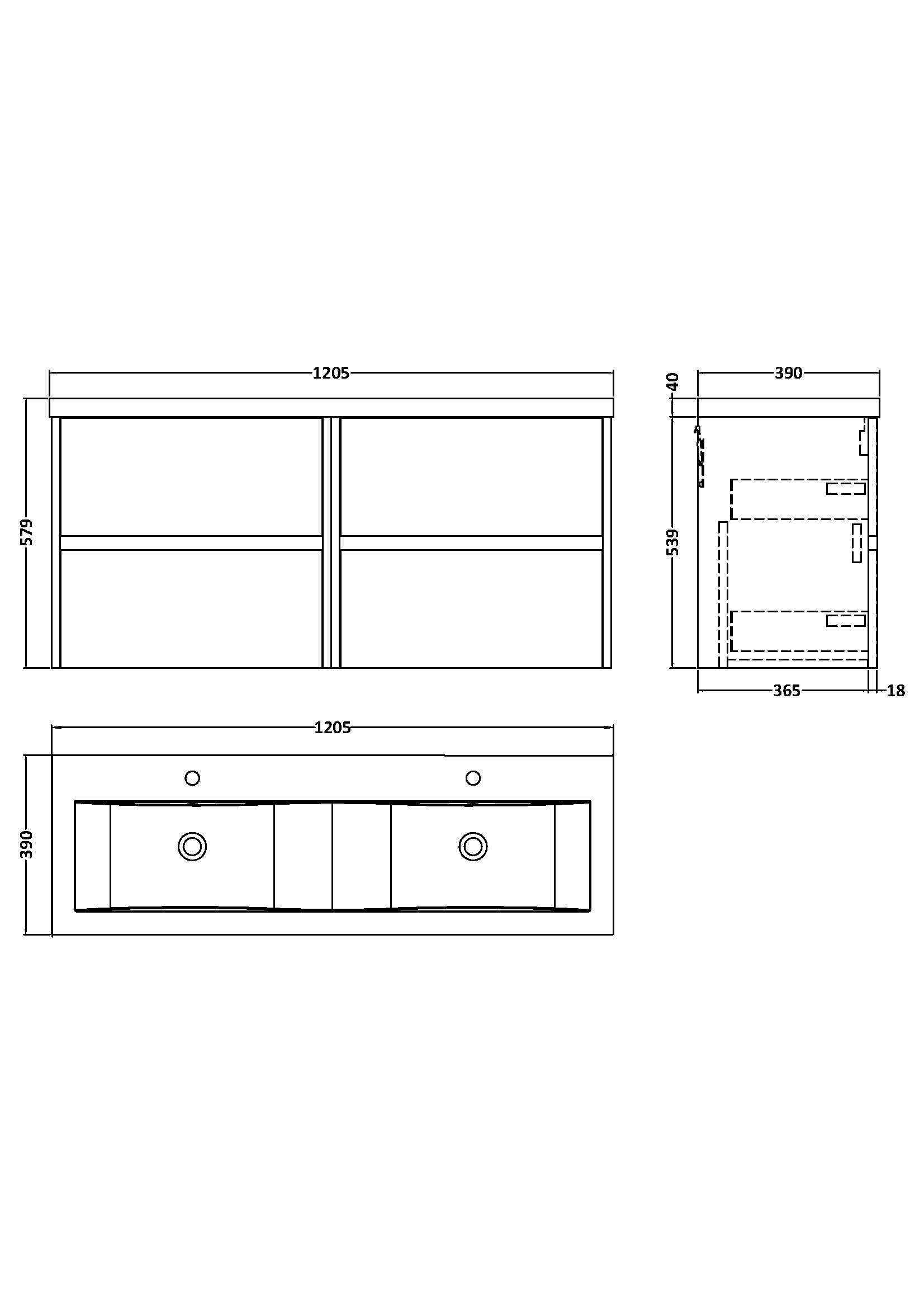 Nuie Havana 1200mm Wall Hung 4 Drawer Vanity Unit with Double Basin