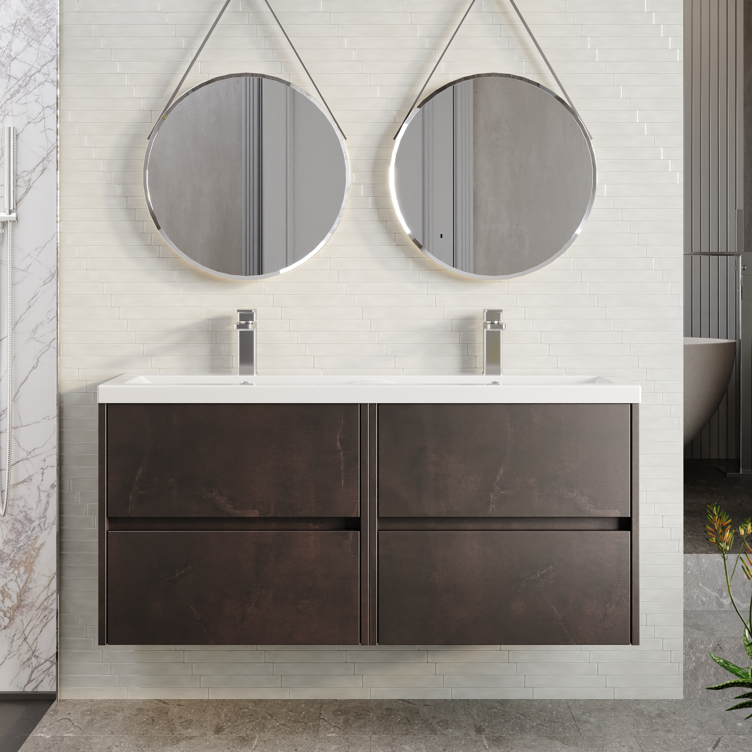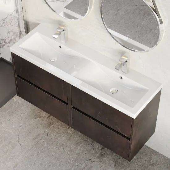 Nuie Havana 1200mm Metallic Slate Wall Hung 4 Drawer Vanity Unit & Double Polymarble Basin
