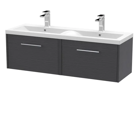 Hudson Reed Juno 1200mm Wall Hung 2-Drawer Vanity & Double Basin - Graphite Grey