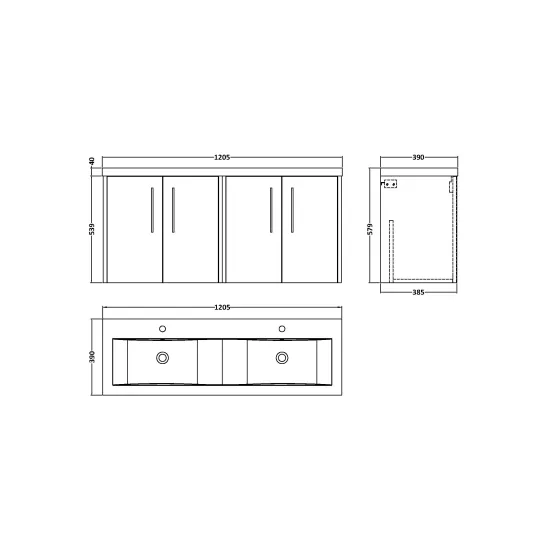 Hudson Reed Juno 1200mm Wall Hung 4-Door Vanity & Double Basin - Graphite Grey