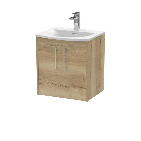 Hudson Reed Juno 500mm Wall Hung 2-Door Vanity & Curved 1 Tap Hole Basin - Autumn Oak