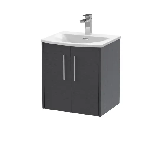 Hudson Reed Juno 500mm Graphite Grey Wall Hung 2-Door Vanity Unit with Curved Basin