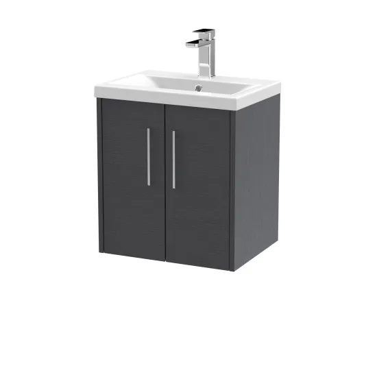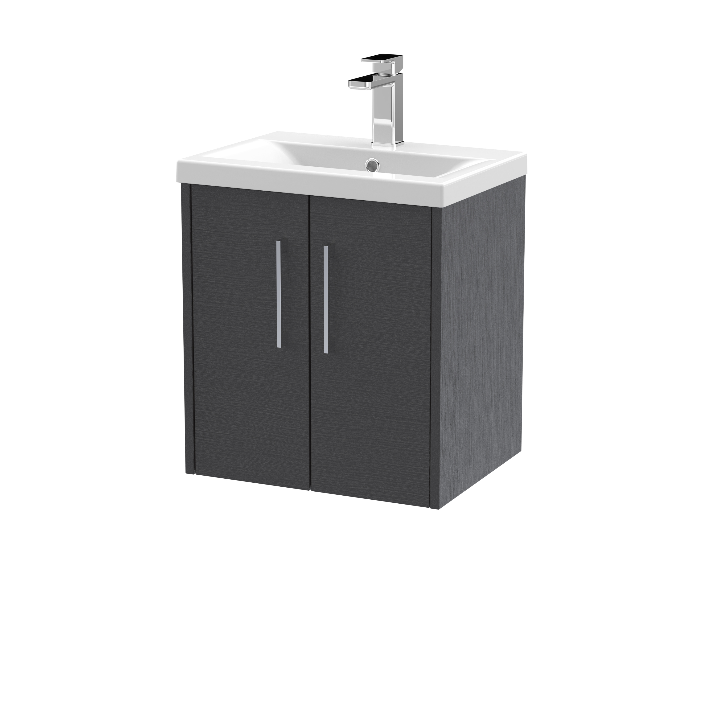 Hudson Reed Juno 500mm Wall Hung Graphite Grey 2-Door Vanity Unit with Mid-Edge 1 Tap Hole Basin