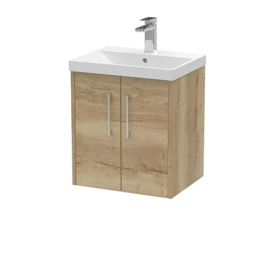 Hudson Reed Juno 500mm Autumn Oak Wall Hung 2-Door Vanity Unit With Thin-Edge 1 Tap Hole Basin