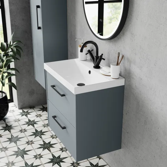 Hudson Reed Juno 600mm Wall Hung 2-Drawer Vanity & Thin-Edge 1 Tap Hole Basin - Coastal Grey