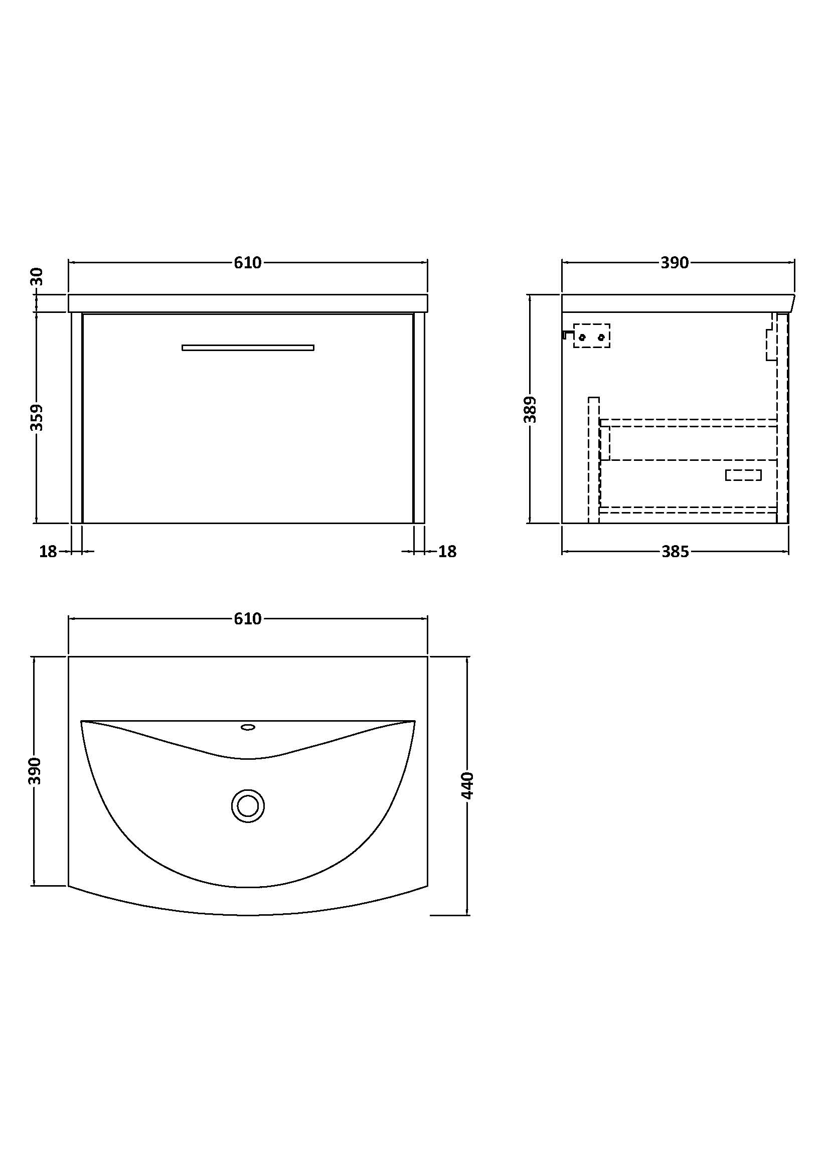 Hudson Reed Juno 600mm Wall Hung Single Drawer Vanity & Curved 1 Tap Hole Basin - Graphite Grey