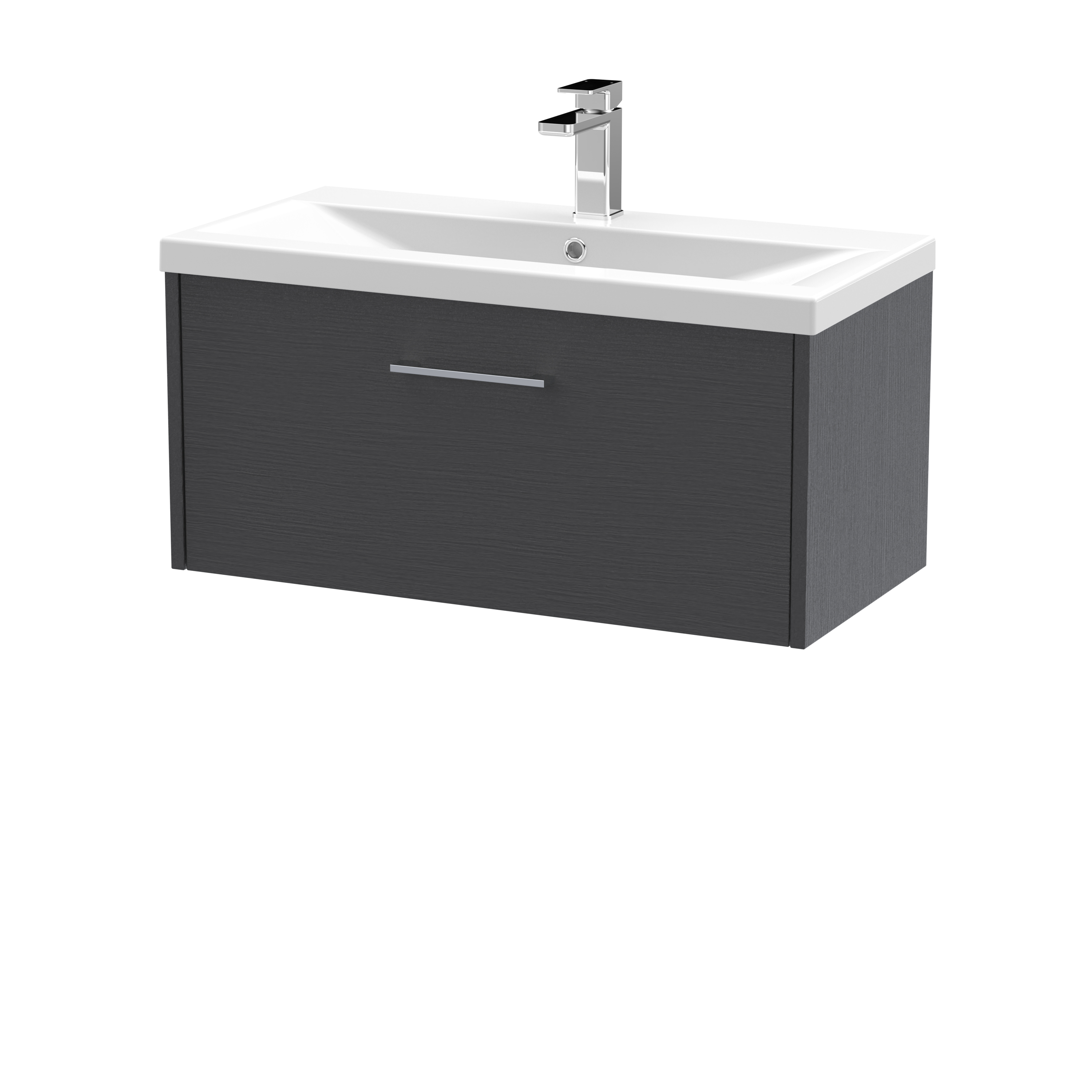 Hudson Reed Juno 800mm Wall Hung Single Drawer Vanity & Mid-Edge 1 Tap Hole Basin - Graphite Grey