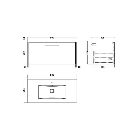 Hudson Reed Juno 800mm Wall Hung Single Drawer Vanity & Minimalist 1 Tap Hole Basin - Graphite Grey