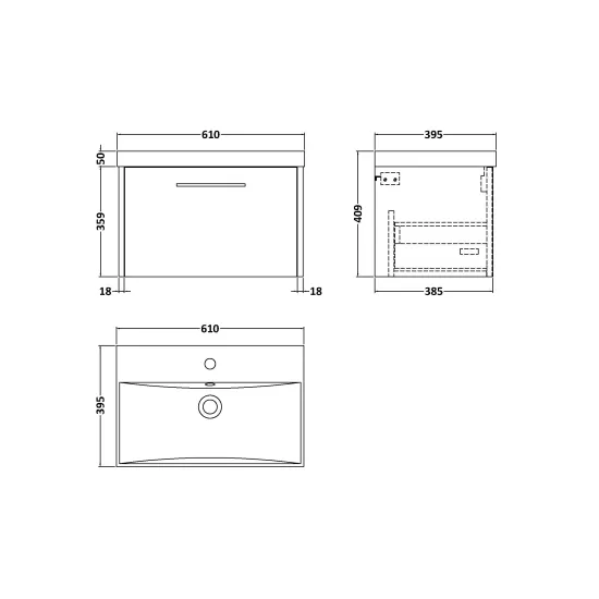 Hudson Reed Juno 600mm 1 Drawer Wall Hung Vanity Unit With Basin