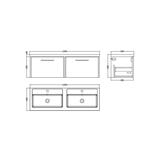 Hudson Reed Juno 1200mm Wall Hung 2 Drawer Vanity Unit & Double Basin With Handles