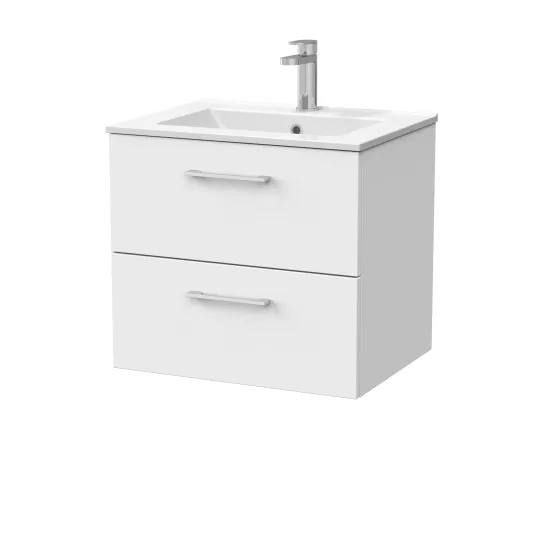 nuie Lux Kivo 600mm 2- Drawer Wall Hung Unit with a 1 Tap Hole Minimalist Basin Top - Matt White