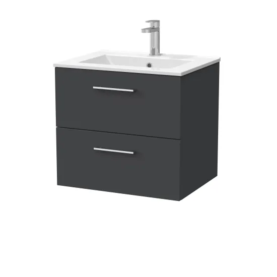 nuie Lux Kivo 600mm 2- Drawer Wall Hung Unit with a 1 Tap Hole Minimalist Basin Top - Soft Black