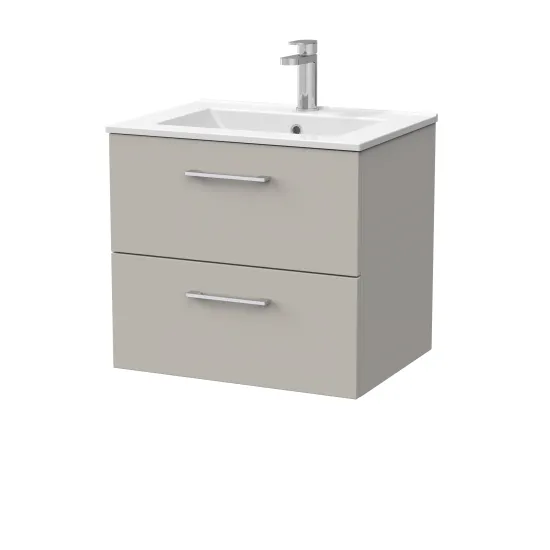 nuie Lux Kivo 600mm 2- Drawer Wall Hung Unit with a 1 Tap Hole Minimalist Basin Top - Pebble Grey