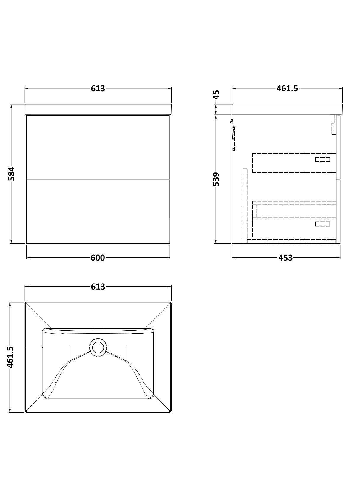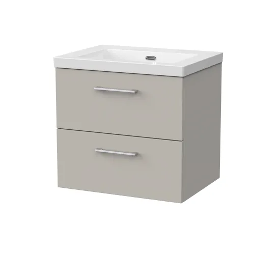 nuie Lux Kivo 600mm 2- Drawer Wall Hung Unit with a Contemporary Basin - 0 Tap Holes - Pebble Grey