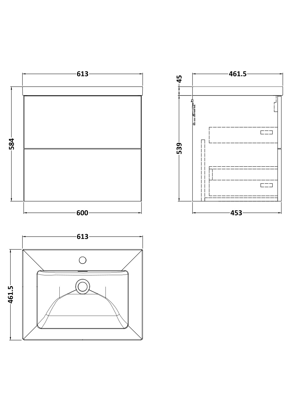 nuie Lux Kivo 600mm 2- Drawer Wall Hung Unit with a Contemporary Basin - 1 Tap Hole - Pebble Grey