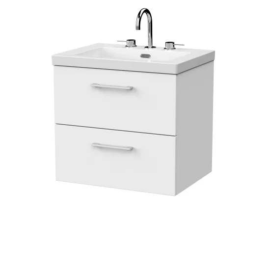 nuie Lux Kivo 600mm 2- Drawer Wall Hung Unit with a Contemporary Basin - 3 Tap Holes - Matt White