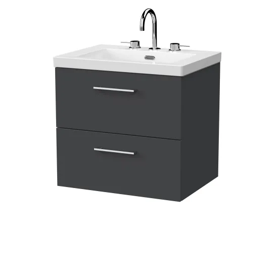nuie Lux Kivo 600mm 2- Drawer Wall Hung Unit with a Contemporary Basin - 3 Tap Holes - Soft Black