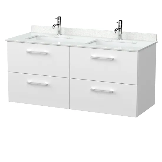 nuie Lux Kivo 600mm 2- Drawer Wall Hung Unit with a Double Bowl Marble Top 1 Tap Hole in White - Matt White