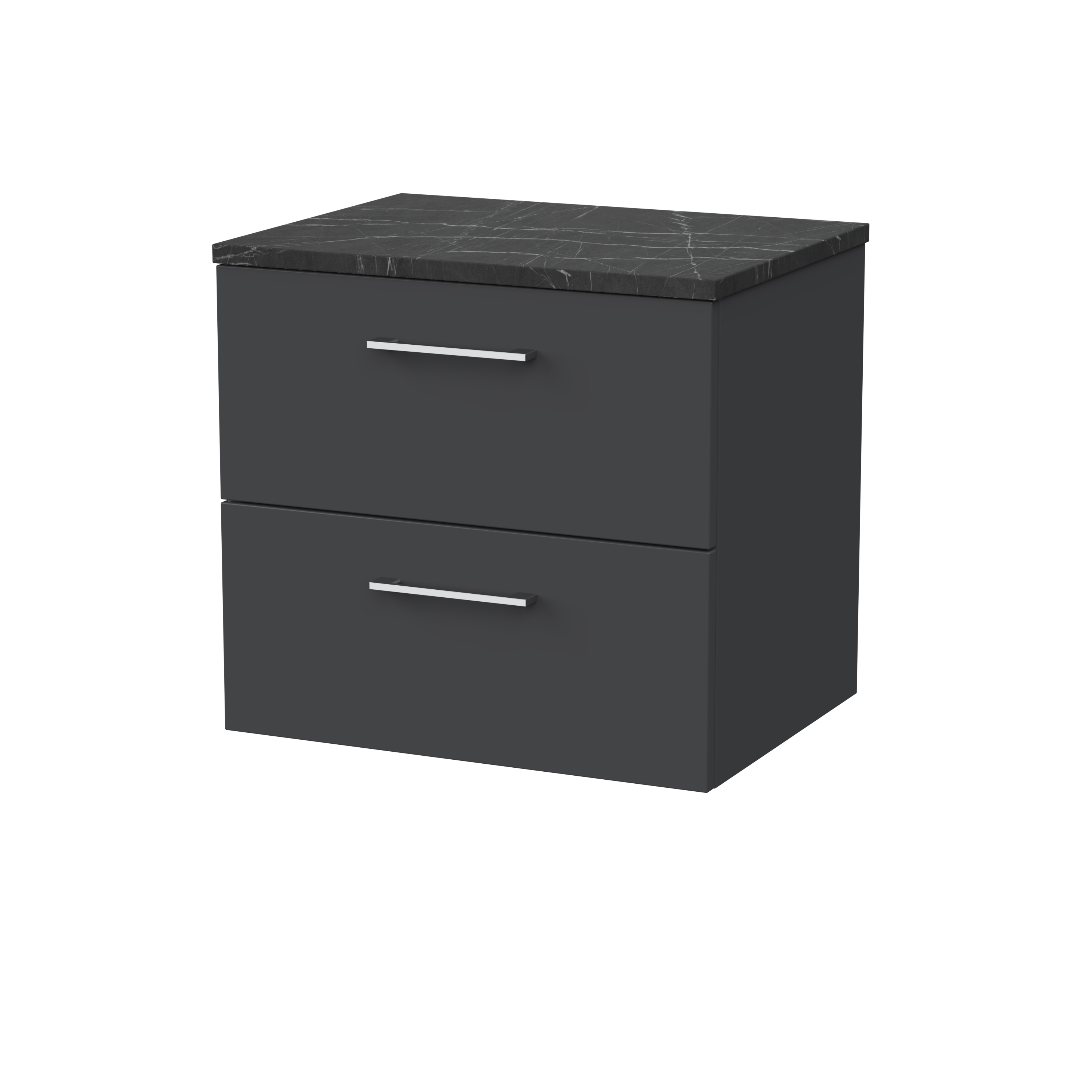 nuie Lux Kivo 600mm 2- Drawer Wall Hung Unit with a Laminate Worktop - Soft Black