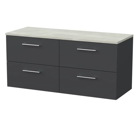nuie Lux Kivo 600mm 2- Drawer Wall Hung Unit with a Laminate Worktop - Soft Black
